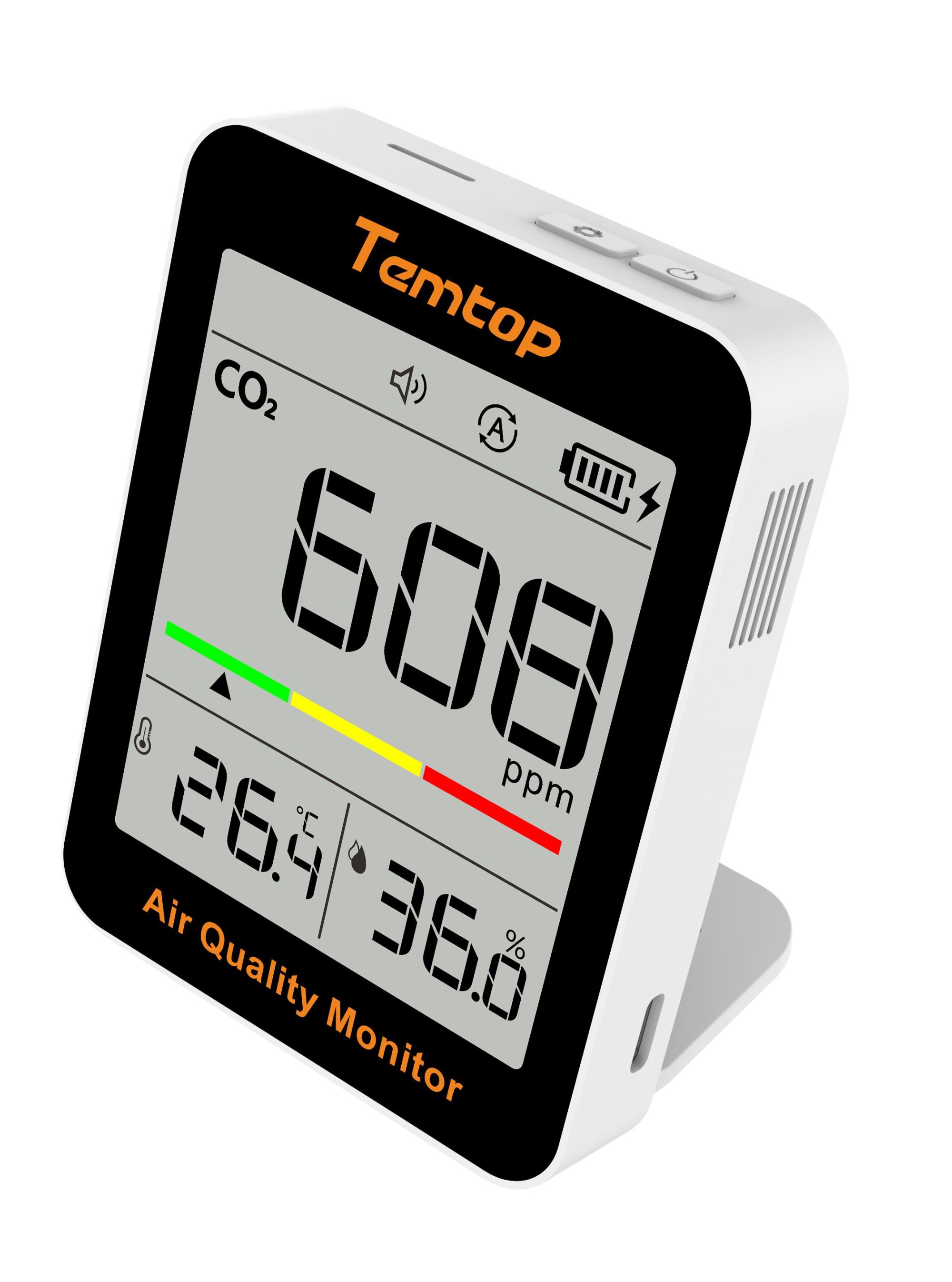 Temtop M2000 第二環境空氣質量監測儀是一款高度準確和可靠的儀器,可測量和記錄各種空氣質量參數,包括 CO2、PM2.5、PM10、溫度、濕度、HCHO 和顆粒物。