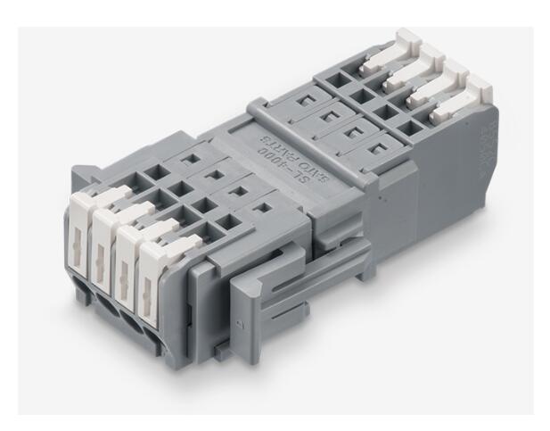 無螺絲接線端子, 1 芯 4 孔, 交叉, 分支, 按鈕止動器, 絞合線, 單線, 尼龍 94V-0